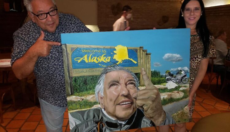 O quadro retrata a chegada de Jorge no Alasca. A viagem foi realizada de moto.